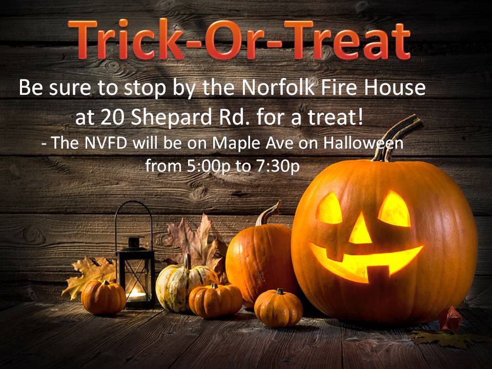 Stop by the Norfolk Fire Station on Halloween night, 5:00–7:30 PM, for a sweet treat! 🍬🚒
